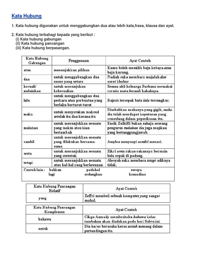 Kata hubung ini menghubungkan satu klausa sebagai komplemen pada satu klausa utama. Ayat majmuk perkataan yang hilang. Bm tahun 3 kata hubung.